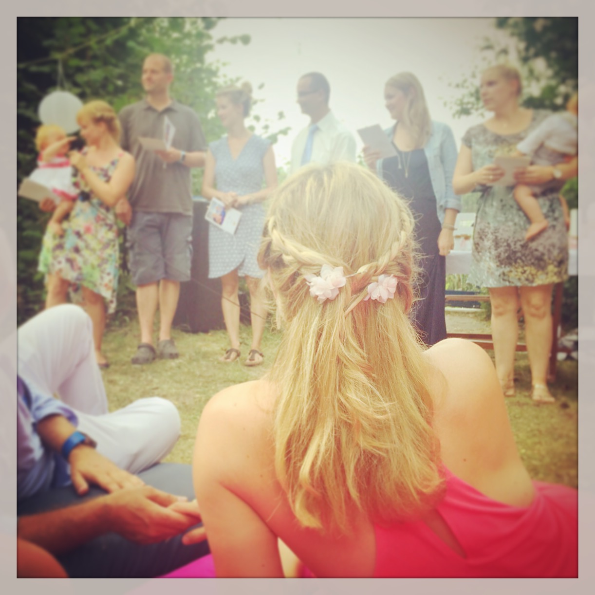 Kurzum: In den Tagen vor Eurer Taufe organisierten wir uns halb zu Tode. Zwischendurch hingen die Nerven am Bindfaden und wir ganz schön durch. Dann aber, eine gute Stunde vor Beginn der Zeremonie, war ALLES fertig (sogar meine Haare) – und ich sehr guter Dinge.