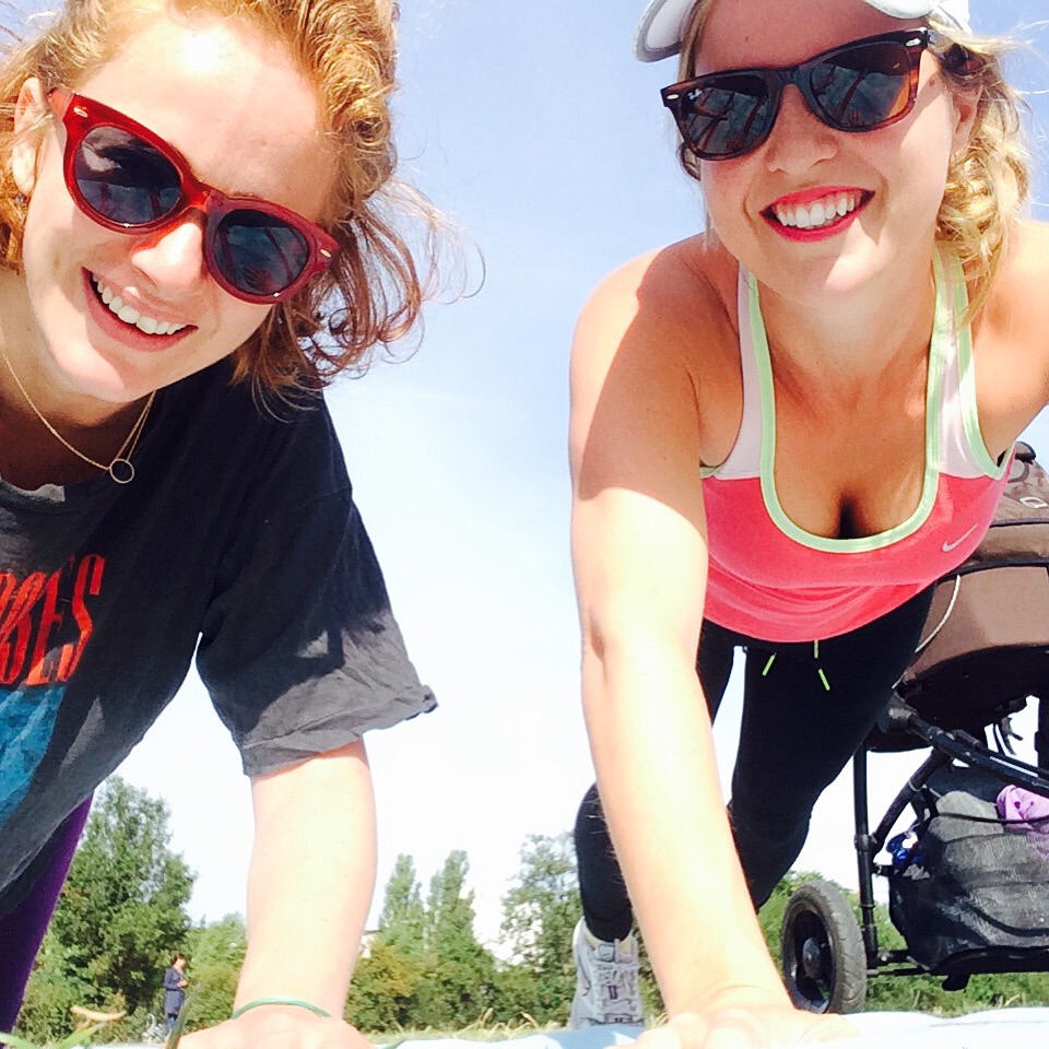 Sportsfreundin Patricia (l.) und ich gestern im Mauerpark. In Sachen Abstillen ist sie mir schon vor Monaten davon gesprintet
