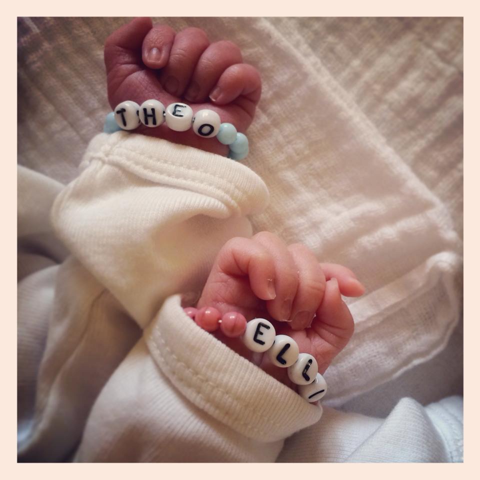 Irgendwie nicht. Denn neben dem engsten Clan fand ich es nett, auch Ex-Freund Olli, meine spanische Intercambio-Freundin Virginia oder die alten Lieblingskommilitonen zu informieren, selbst wenn der Kontakt zu allen nur noch sporadisch ist. Also entschieden wir uns für ein Mittelding: Wir zeigten Eure winzigen Hände, mit den süßen Namensperlenketten aus dem Krankenhaus.