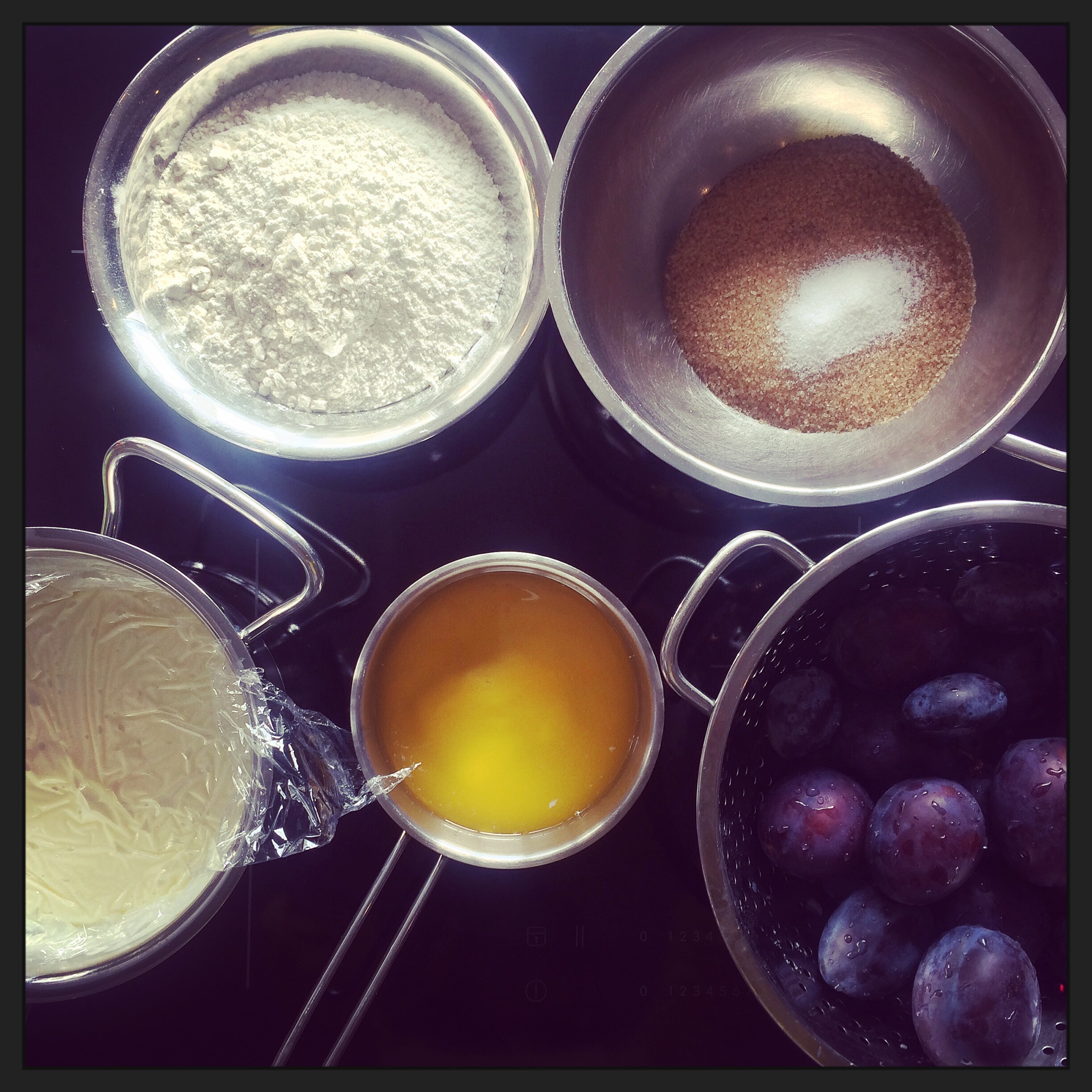 Dass ich gern backe, habt Ihr vermutlich schon mitbekommen. Am liebsten: Experimente mit allem, was noch so da ist. Kürzlich entstand dabei ein (inzwischen) Dauerbrenner, der nicht nur Muddi-, sondern sogar äußerst Zwillimuddifreundlich ist, weil: wenig Zutaten (siehe Foto, mehr nicht!), blitzschnell. So geht’s: Vanillepudding kochen (ruhig mit Pulver aus der Tüte). 175g Butter schmelzen, mit 150g braunem Zucker und einem Tütchen Vanillezucker mischen, 300g Mehl dazu. Zwei Drittel des Teigs in einer Springform als Boden andrücken, Pudding (ersetzt später die Sahne!) und mindestens ein halbes Kilo entsteinte Pflaumen drauf. Rest des Teigs drüberbröseln, bei 200 Grad 40 Minuten backen. Begeisterte zuletzt den Papa Eures Papas (der sonst mitunter durchaus kritisch ist mit dem, was ich in der Küche so zaubere) – und heute hoffentlich auch die Anwesenden beim Laternenbasteln in der Kita.